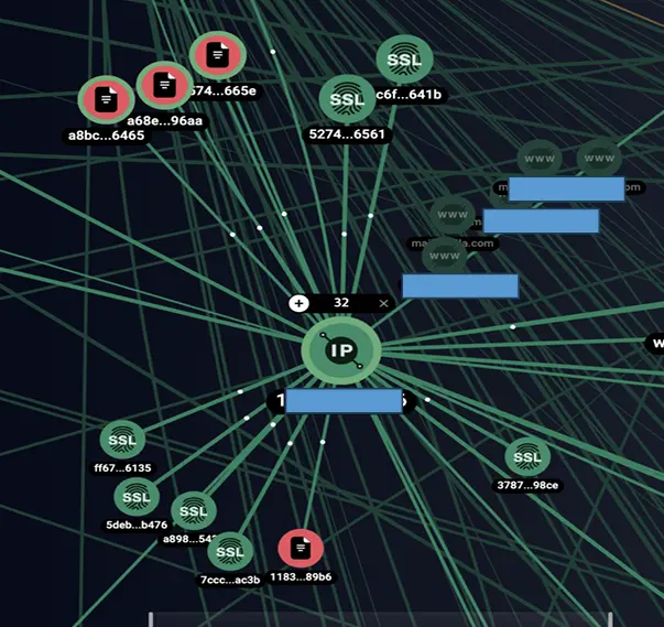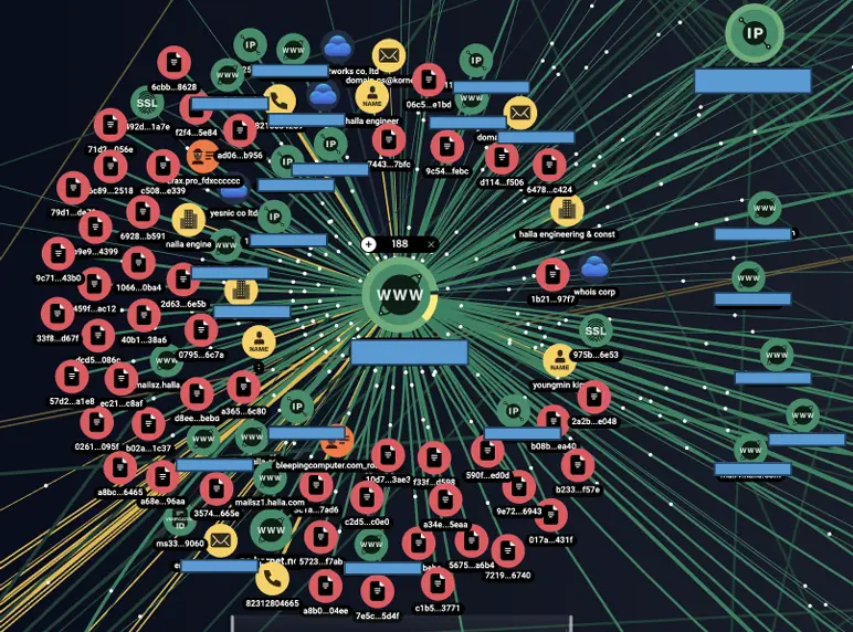 웹스냅샷 기술을 이용해 과거 변경 이력이 포함된 통합 그래프 제공 (악성코드, 피싱, C2서버 및 위협 행위자 등의 정보 포함, 자산 간 연관관계 가시성 제공)