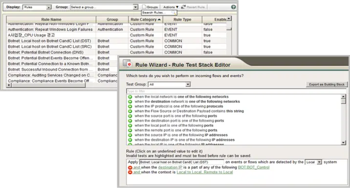 로그, 플로우 및 취약점 정보 등 수집되는 다량의 정보를 실시간으로 분석하고 다양한 형태의 측면으로 해석하는 포괄적 상관관계 분석 룰 및 룰셋을 제공합니다.