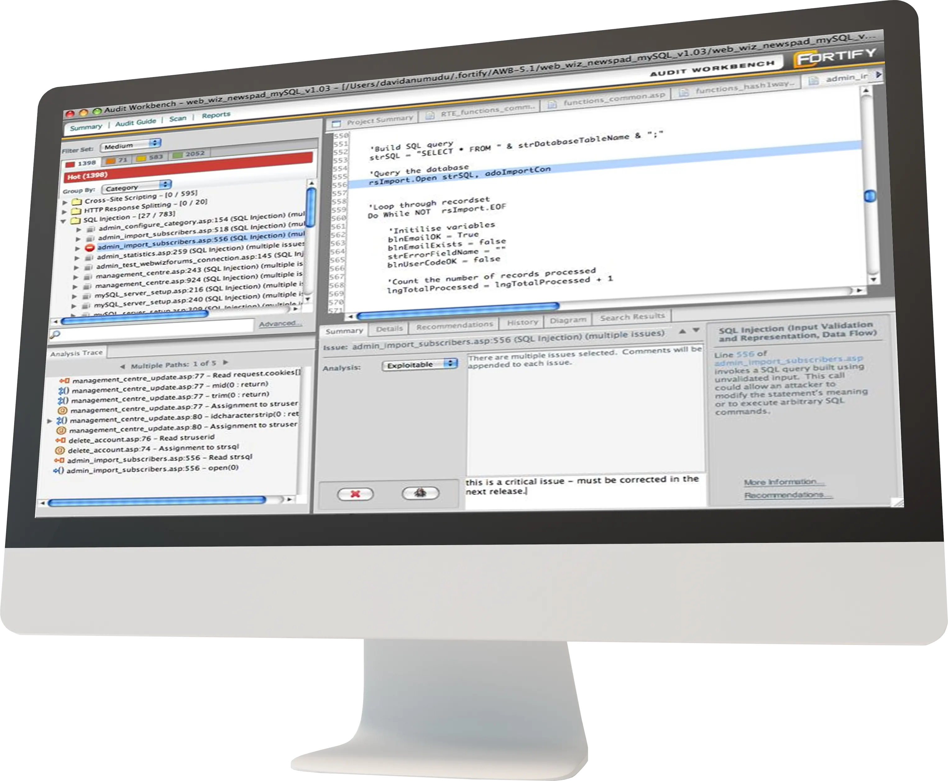 Fortify 정적 코드 분석기는 다양한 언어의 보안 코딩 규칙을 위반한 소프트웨어의 분석 도구입니다.